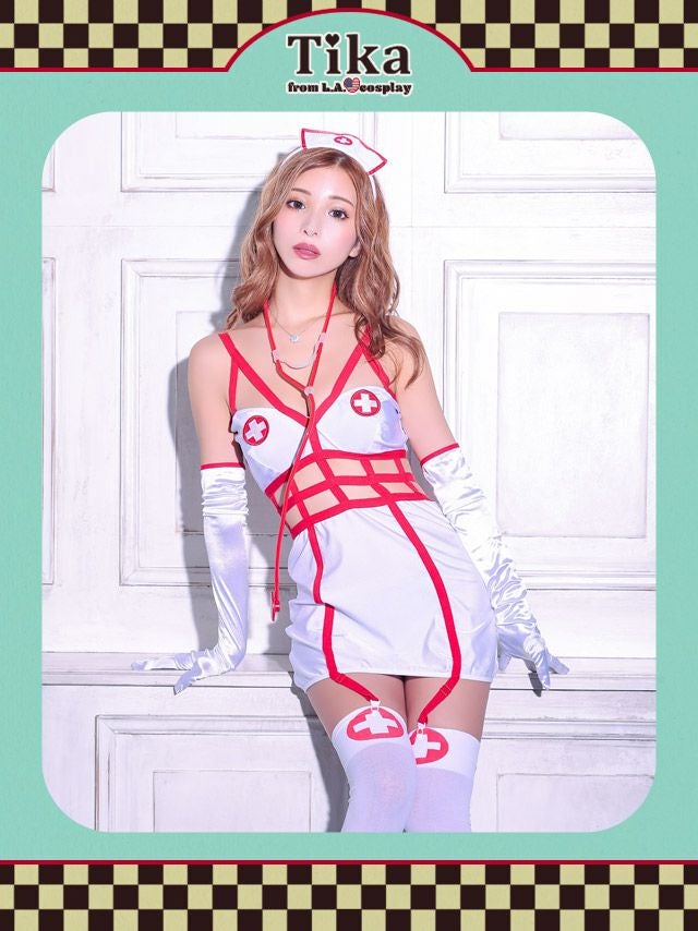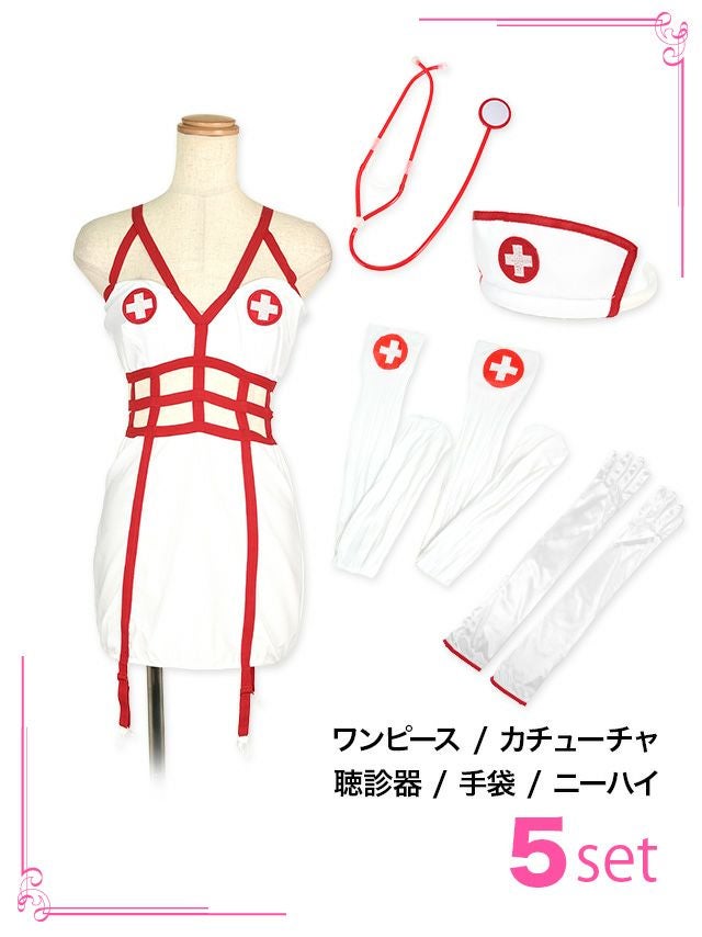 攻め小悪魔ナース♪ [コスプレ] フロントジッパーパイピングレザーセクシーブラックナース [6点セット] (ワンピース/ベルト/チョーカー/カチューシャ/グローブ/聴診器)