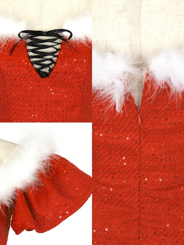 サンタコス 2点set オフショルバストレースアップツイードラメガーリー猫サンタコスプレのイメージ画像4