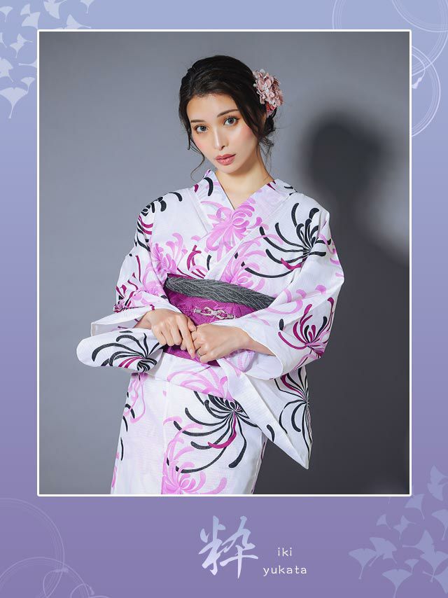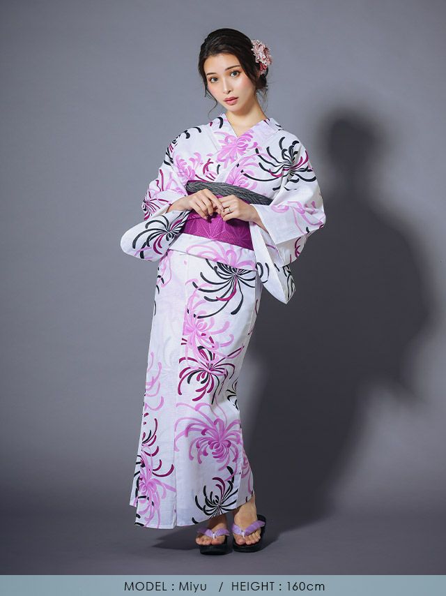 粋 白地に華やか糸菊ゆかた3点セット内容
