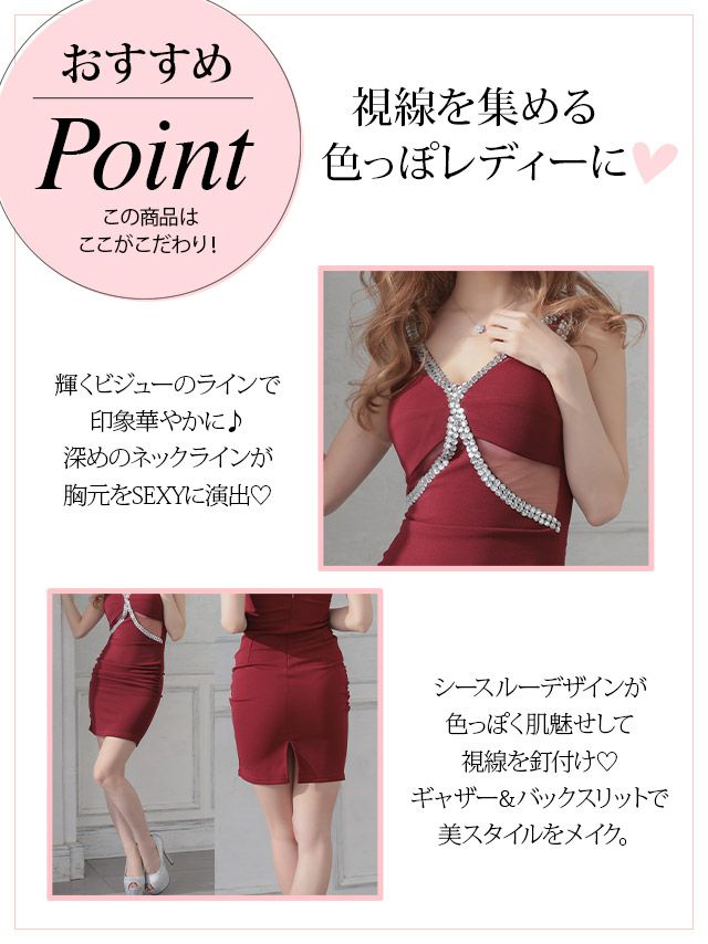 他の画像を見る 上品色っぽスタイル♪ 半袖Vネックビジューデザイン切り替えサイドシアーレースアップタイトミニドレス (Sサイズ~XLサイズ) (みゆう/キャバドレス着用) ¥ 8,690 税込 在庫切れ お気に入りに追加