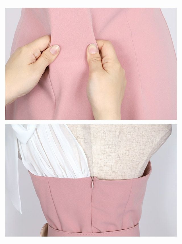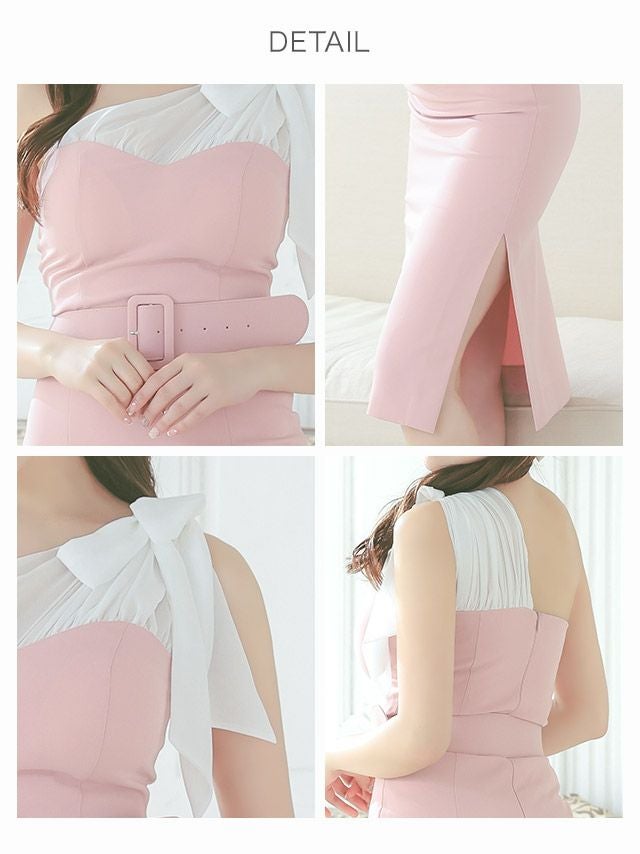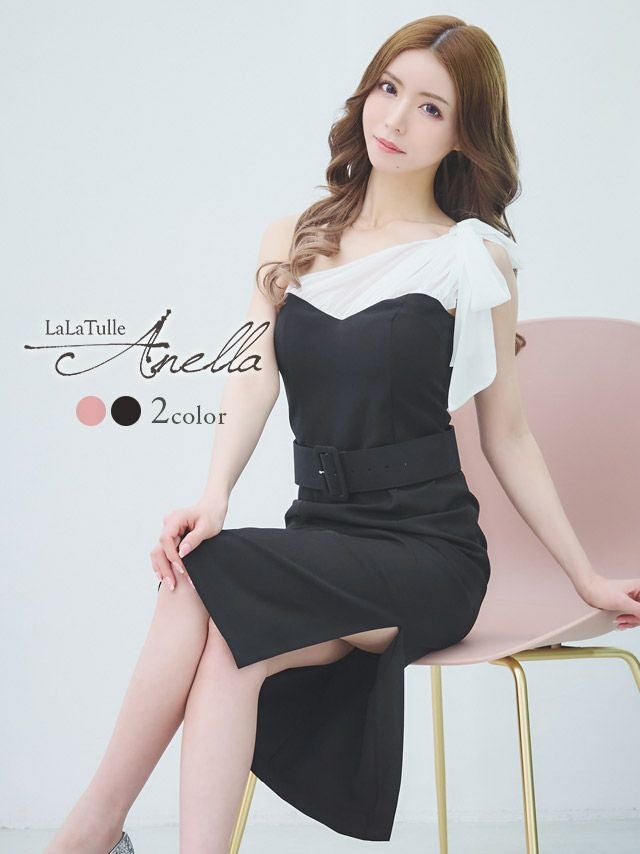 4. [韓国ドレス] タイト膝丈ドレス ワンショルダー ウエストベルト 大人 (Sサイズ~Lサイズ) (森咲智美着用) [Anella]