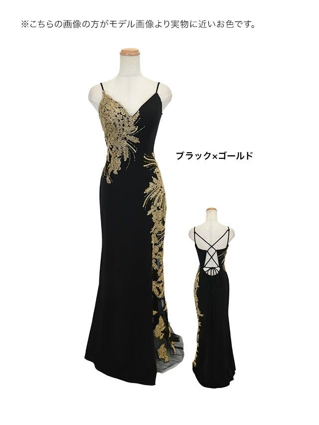ゴールドの刺繍で一気にゴージャスな装いに。