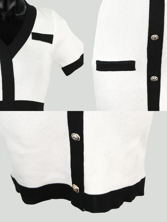 バイカラーシンプルタイトミニ半袖ドレス