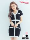 3. ミニドレス 半袖 ニット ブラジャーのまま バイカラー ストレッチ 安い プチプラ タイト キャバドレス (せいせい着用) [th-md2195b]
