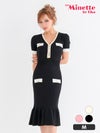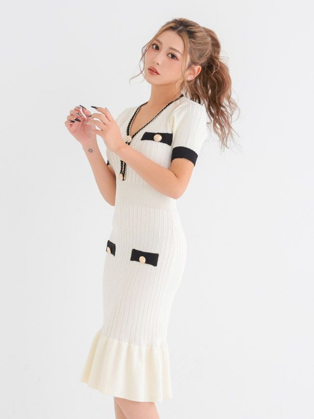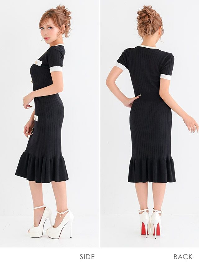 3. 膝丈ドレス 半袖 ニット マーメイド ワンピース ストレッチ 同伴 ブラジャーのまま バイカラー 安い プチプラ タイト キャバドレス (あん着用) [th-mdtc54201c]
