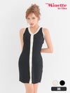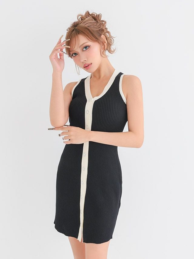 ミニドレス タイトミニ ノースリーブ ワンピース ニット ストレッチ 同伴 バイカラー ブラジャーのまま バイカラー 安い プチプラ タイト キャバドレスの全身フロント画像