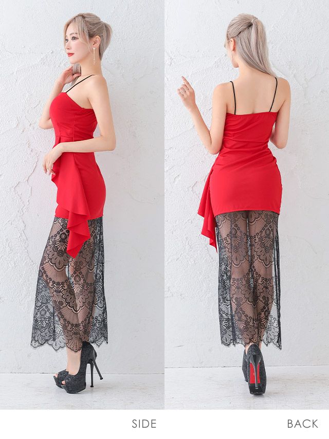 大胆な肌魅せで魅了する♪ キャミソールブラックレース切替サイドタイトロングドレス (せいせい着用)