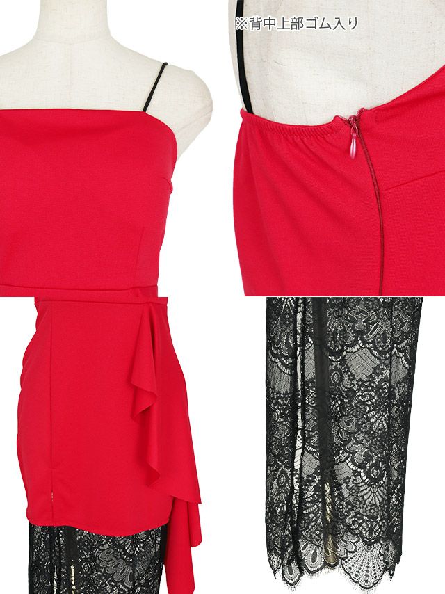 キャミソールブラックレース切替サイドスリットタイトロングドレスのイメージ画像1