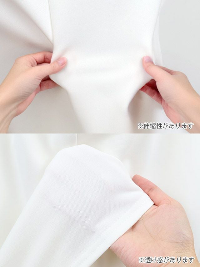 4. 安い タイトロングドレスオフショルダー 谷間 シンプル スリット 背中魅せ ストレッチ シースルー 2Way ワンカラー (波北かほ着用)