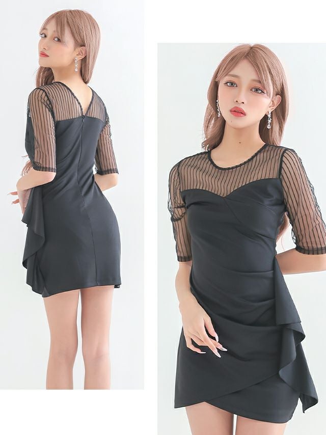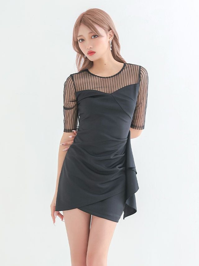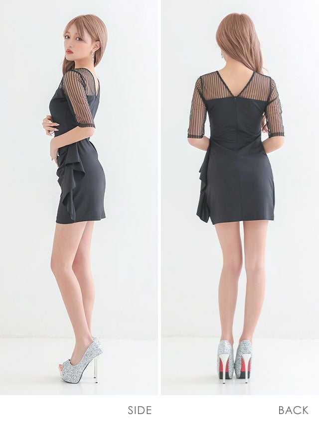 シースルーストライプサイドラッフルタイトミニドレス シースルーストライプサイドラッフルタイトミニドレス