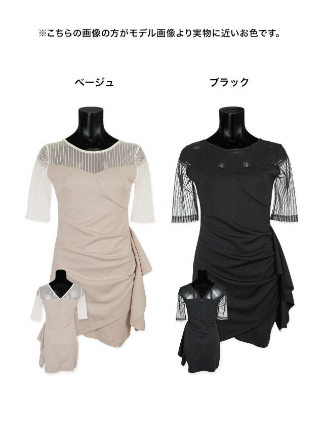 6. シースルーストライプデザイン袖ありタイトミニドレス (林姫奈妙着用)