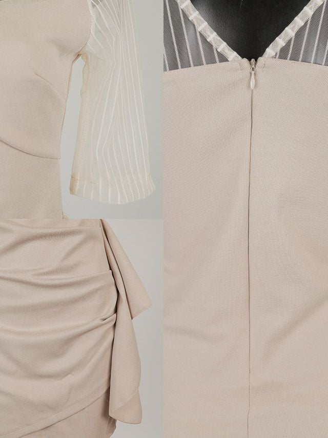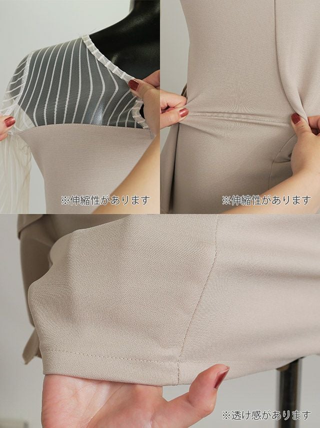 4. シースルーストライプデザイン袖ありタイトミニドレス (林姫奈妙着用)