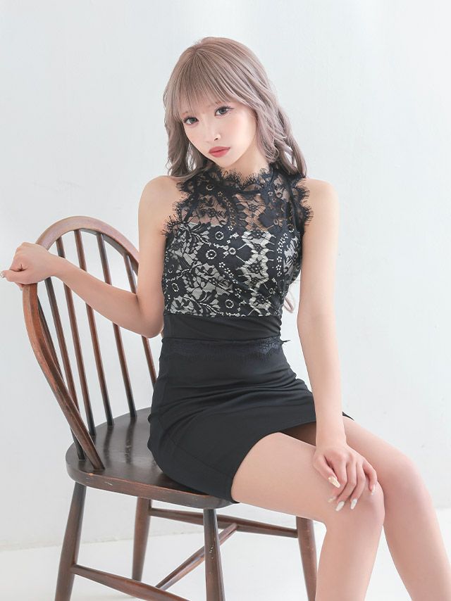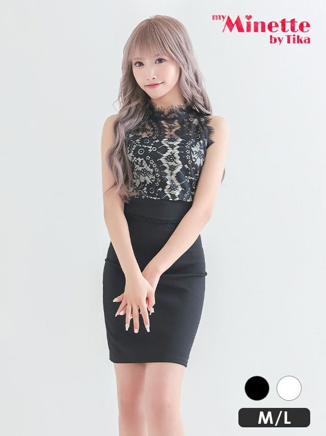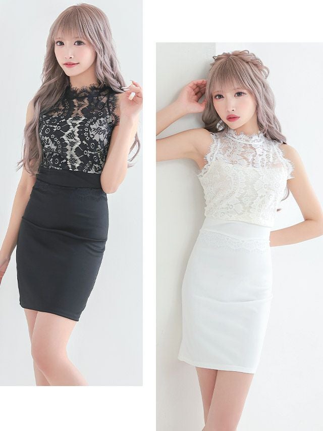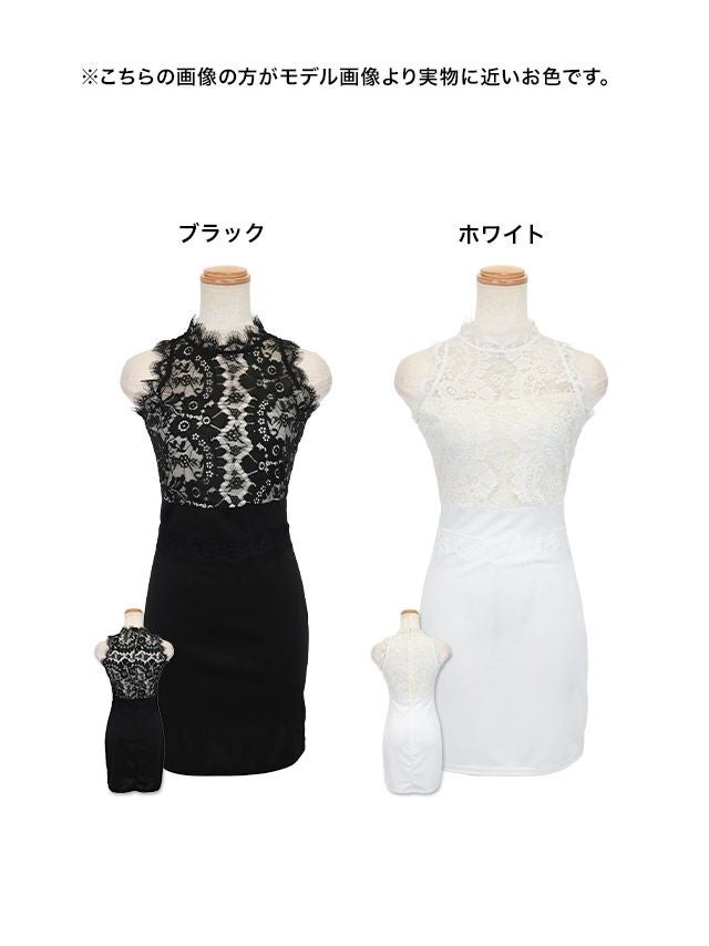 ノースリーブフラワーレース切替タイトミニドレスのカラバリ画像
