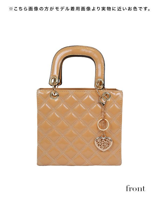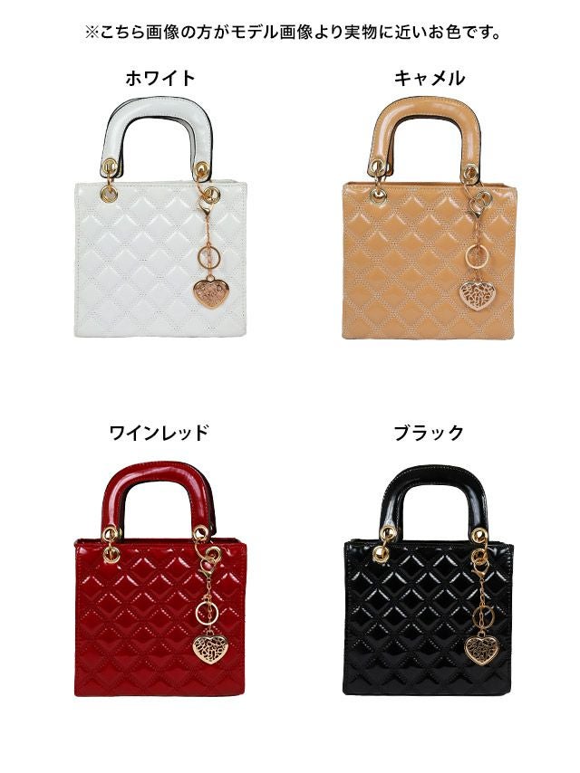 デイリー使いもできちゃう♪ ハートチャーム付きエナメルミニハンドバッグ