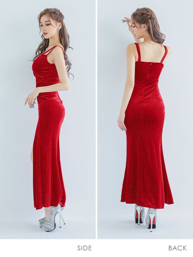 ベロア素材キャミソールスリットタイトロングドレス