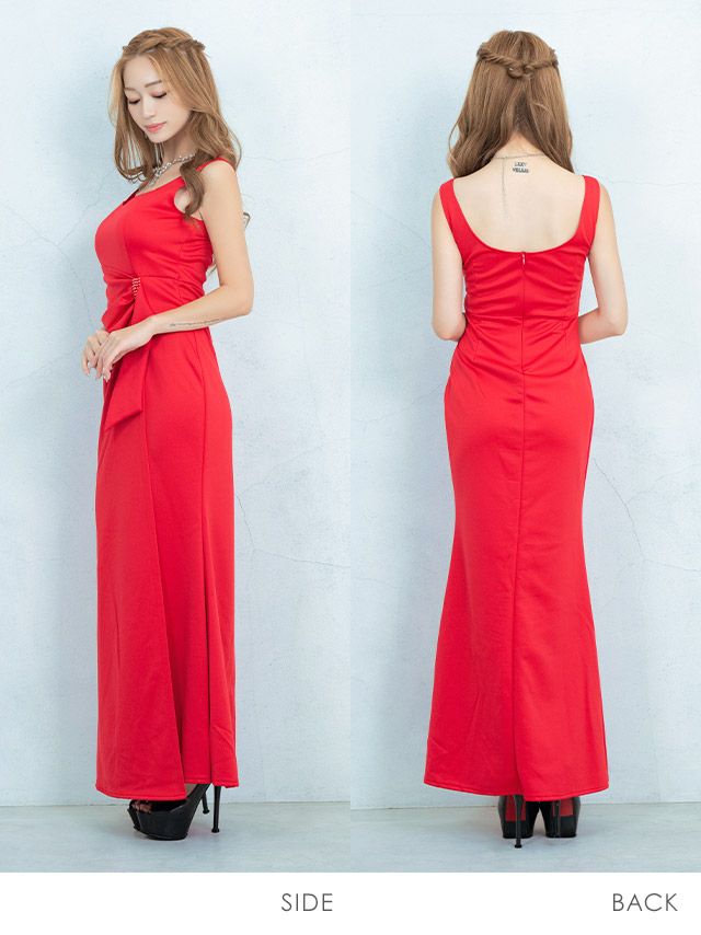 4. ノースリーブウエストラップ風デザインマーメイドロングドレス (なぎ着用)