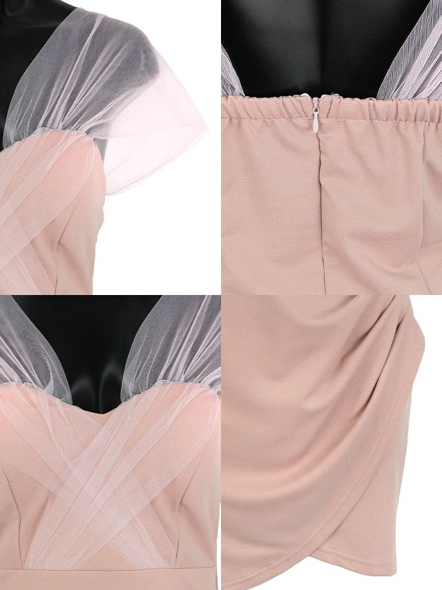 チュールオフショルラップミニドレスの特徴