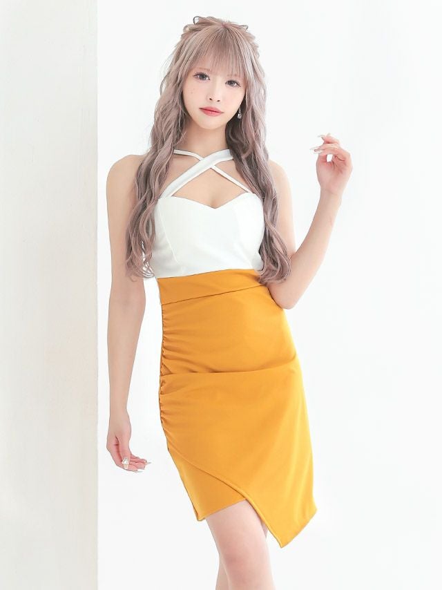 5. クロスネックバイカラーラップ風アシメタイトミニドレス (向葵まる着用)