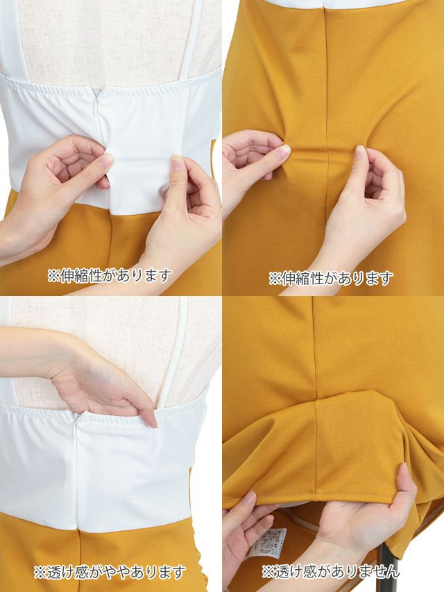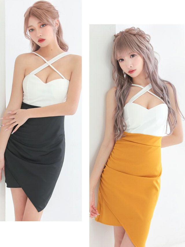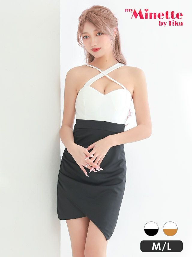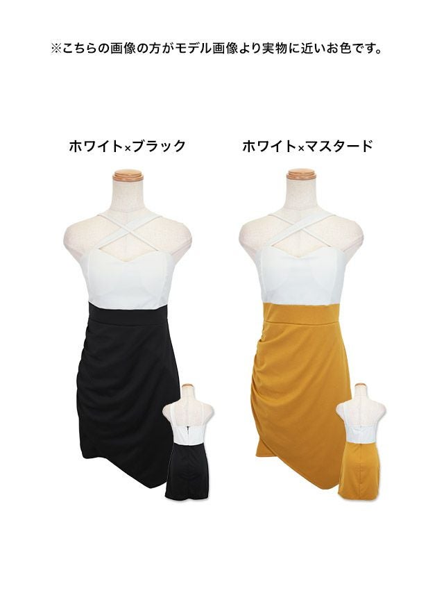 クロスネックバイカラーラップ風アシメタイトミニドレスのカラバリ画像