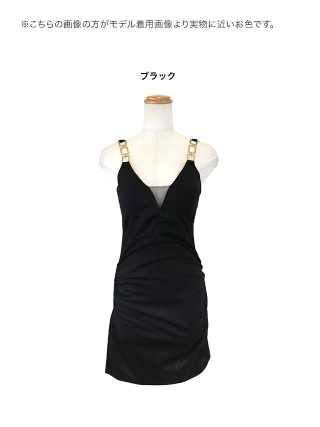 ゴールドショルダーがアクセント♪ 安い タイトミニドレス 谷間 大人 ノースリーブ 上品 背中魅せ ストレッチ プチプラ (あいみん着用)
