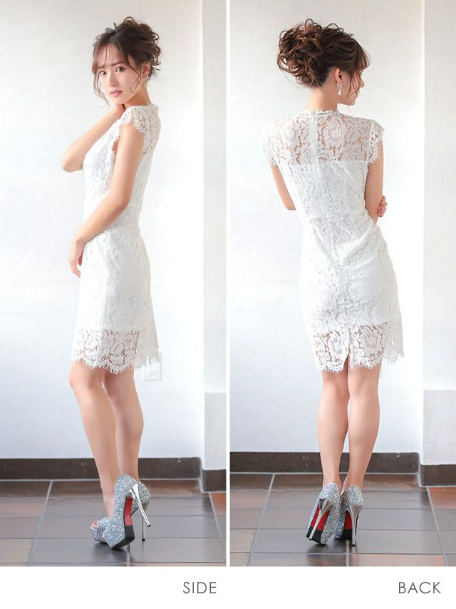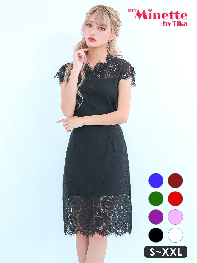 エレガント総レースタイト膝丈ドレスのカラーバリエーション
