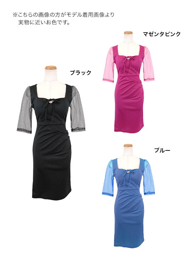 膝丈ドレス プチプラ 袖あり ストレッチ シースルー スクエアネック 同伴 新人 ラウンジ 低身長 二の腕カバー タイト 黒 安い XXL 大きいサイズ キャバドレスのカラーバリエーション
