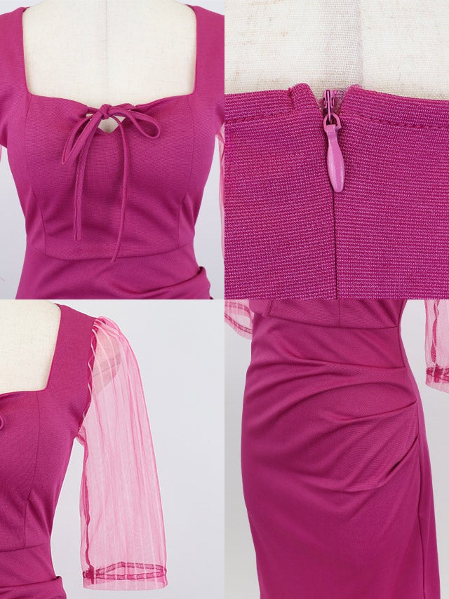 膝丈ドレス プチプラ 袖あり ストレッチ シースルー スクエアネック 同伴 新人 ラウンジ 低身長 二の腕カバー タイト 黒 安い XXL 大きいサイズ キャバドレスのスペック表