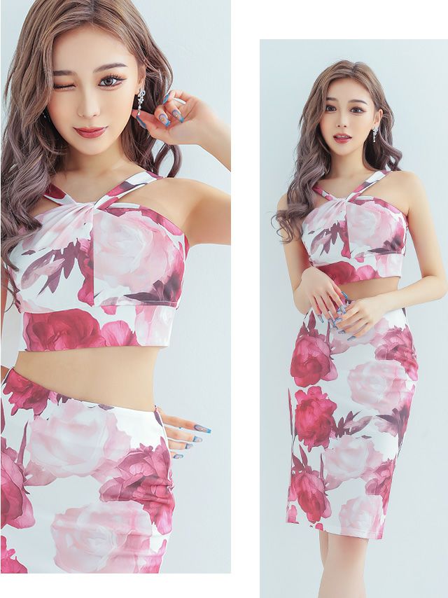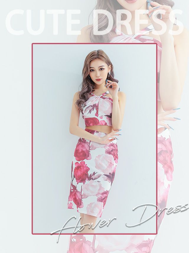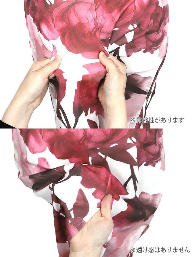 花柄プリントタイト膝丈セットアップドレスのイメージ画像1