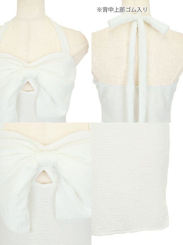 4. 胸元リボンカットアウトホルターネックタイトミニドレス (なぎ着用)