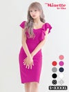 フリル袖ワンカラーストレッチタイト膝丈ドレス