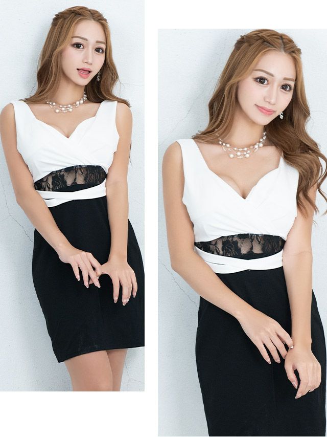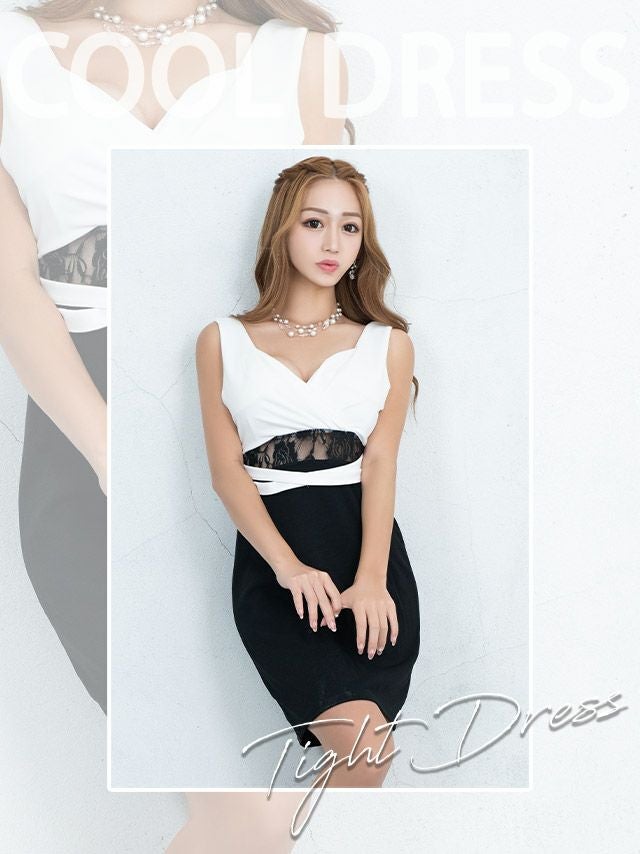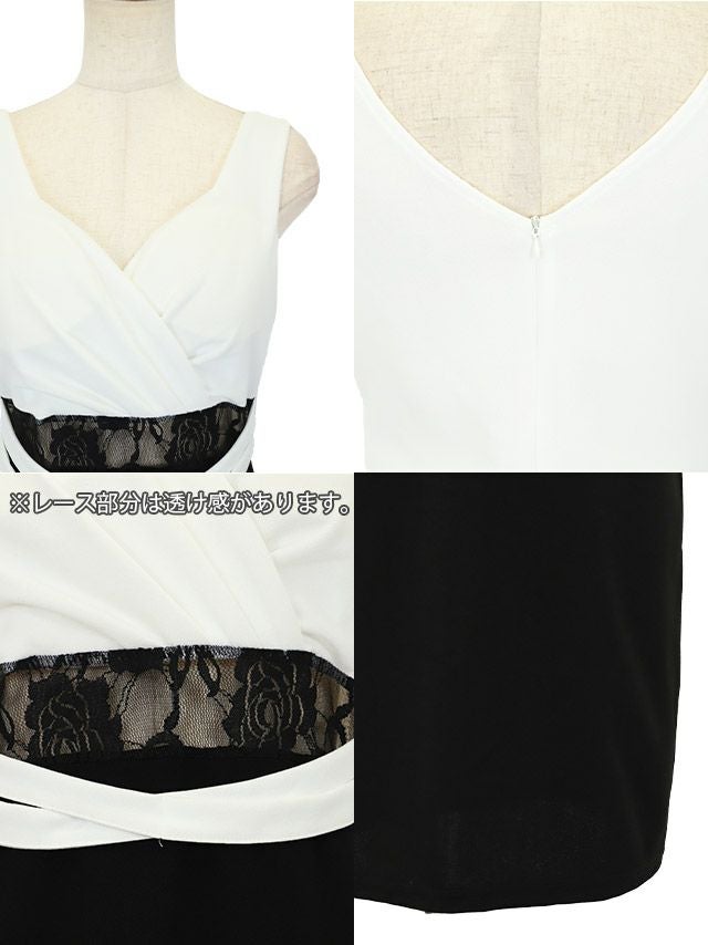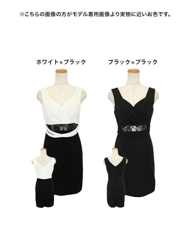 レース切替でセクシーに♪ カシュクールノースリーブウエストカットタイトミニドレス (なぎ着用)