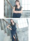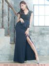 半袖ブラックスカラップレースアシメぺプラム切り替えスリットストレッチタイトロングドレスのカラーバリエーション
