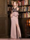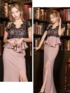 4. 半袖ブラックスカラップレースアシメぺプラム切り替えストレッチタイトロングドレス (Sサイズ~XXLサイズ) (明日花キララ/キャバドレス着用)