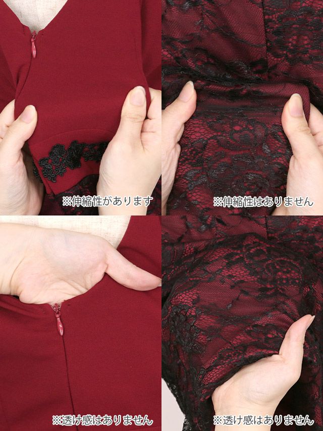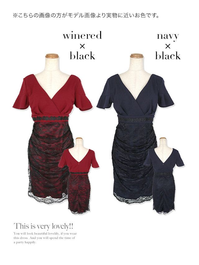 半袖フレアスリーブカシュクールタック切り替えギャザーレースタイトミニドレスのカラーバリエーション