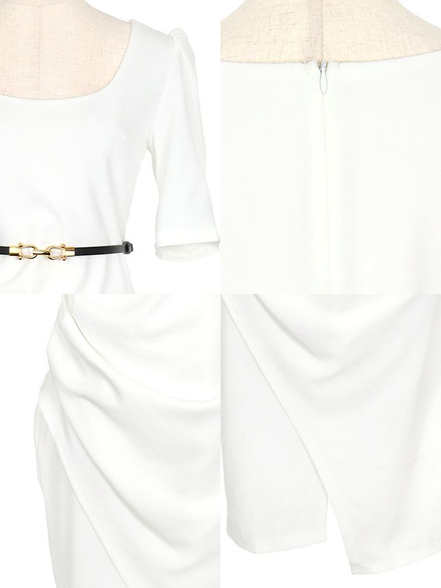 ベルト付き袖ありラップ膝丈タイトドレスの商品詳細2