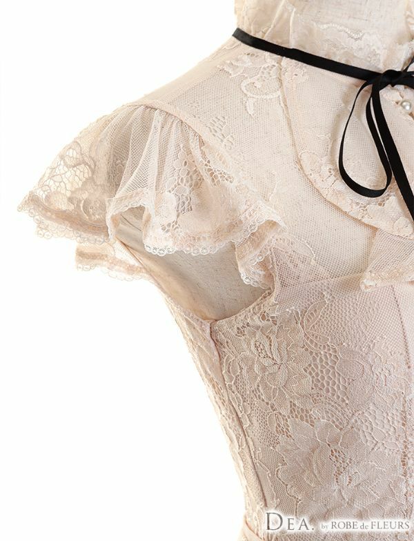 ガーリーな可愛さをプラス☆ [DEA.byROBEdeFLEURS/ディアバイローブドフルール] 高級ネックリボン胸元フリルオールレース半袖タイト膝丈ドレス