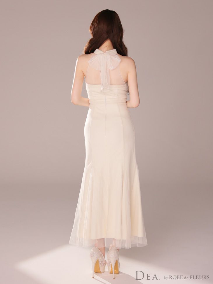 4. [DEA.byROBEdeFLEURS/ディアバイローブドフルール] 高級 バストシースルー ホルターネック ウエストベルト ネックリボン チュール 谷間魅せ Aラインロングドレス