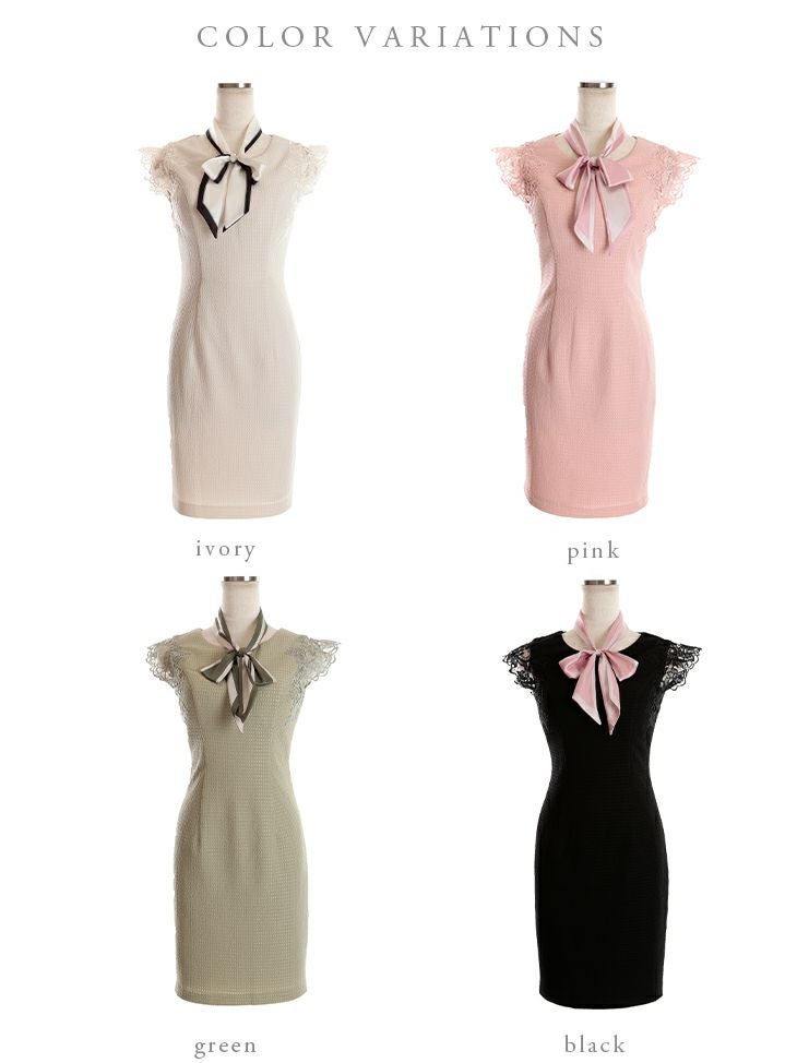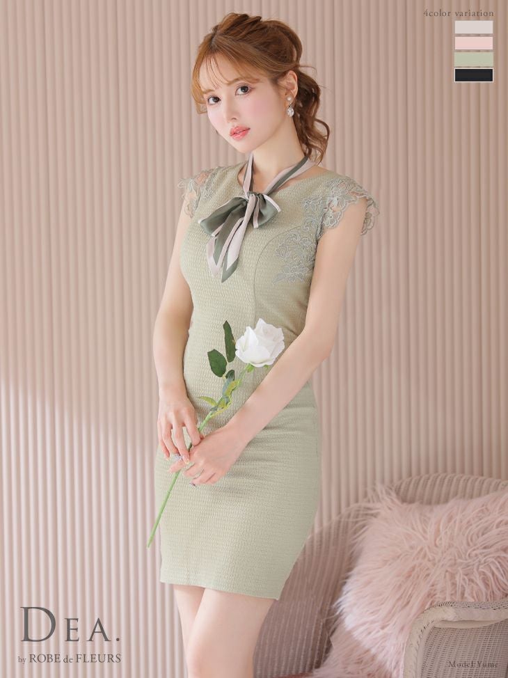 4. [DEA.byROBEdeFLEURS/ディアバイローブドフルール] 高級スカーフネックリボンケミカルレース袖ワンカラーノースリーブタイトミニドレス