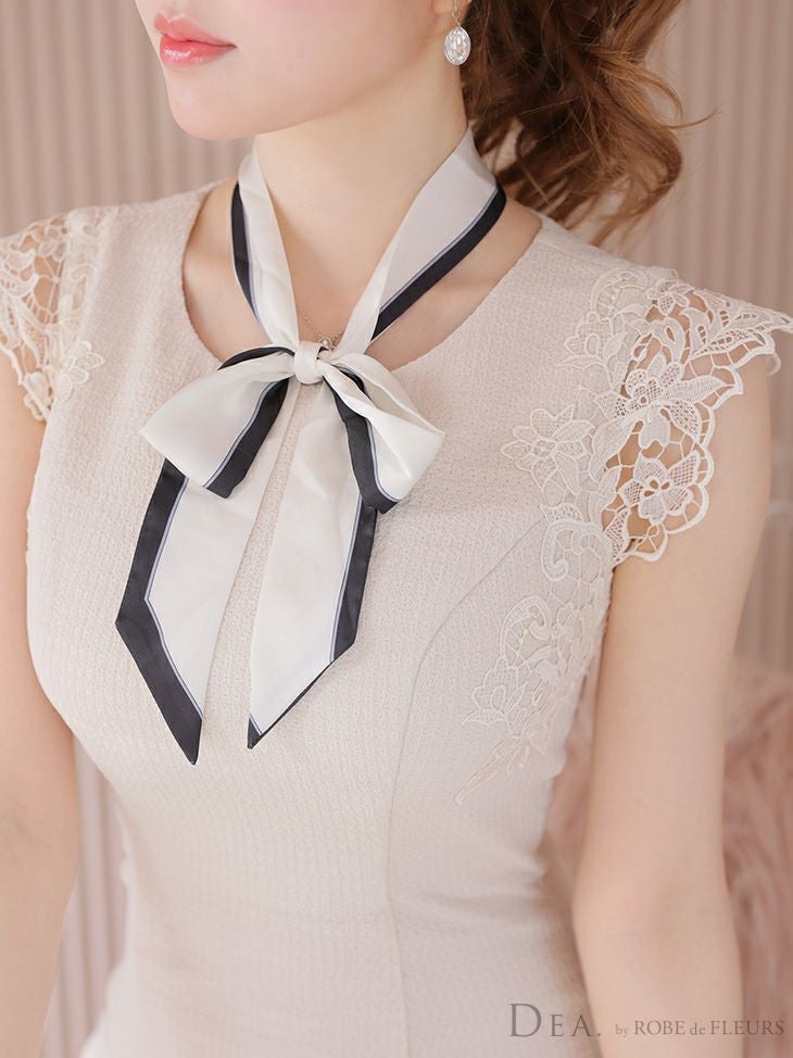 3. [DEA.byROBEdeFLEURS/ディアバイローブドフルール] 高級スカーフネックリボンケミカルレース袖ワンカラーノースリーブタイトミニドレス