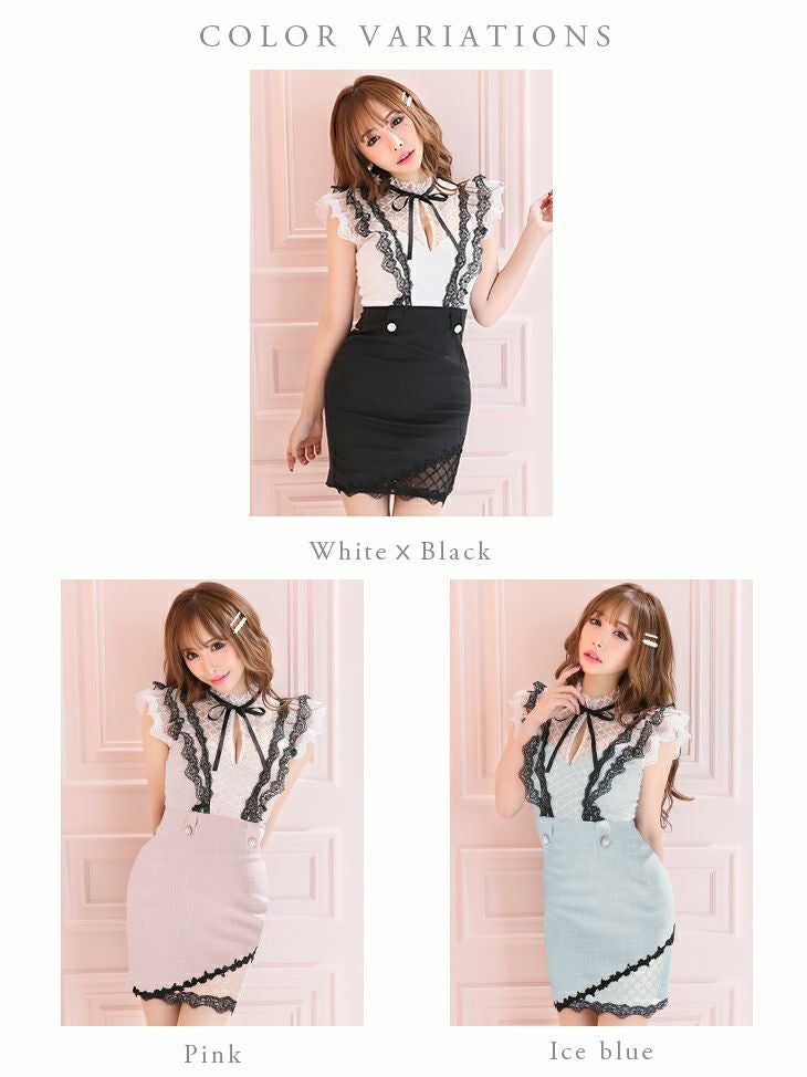 キャバドレス ミニドレス [SALE] [ROBEdeFLEURS/ローブドフルール] 高級ビーズ刺繍レース×フリル袖バイカラータイトミニドレス