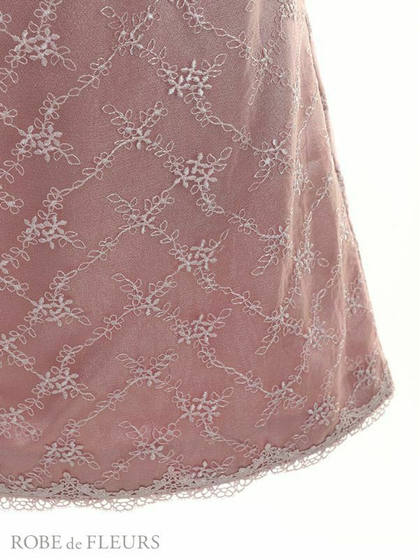 3. [ROBEdeFLEURS/ローブドフルール] 高級 襟付き ネックリボン 刺繍フラワーレース サロペ風 フリル袖 ノースリーブ 台形 フレアミニドレス