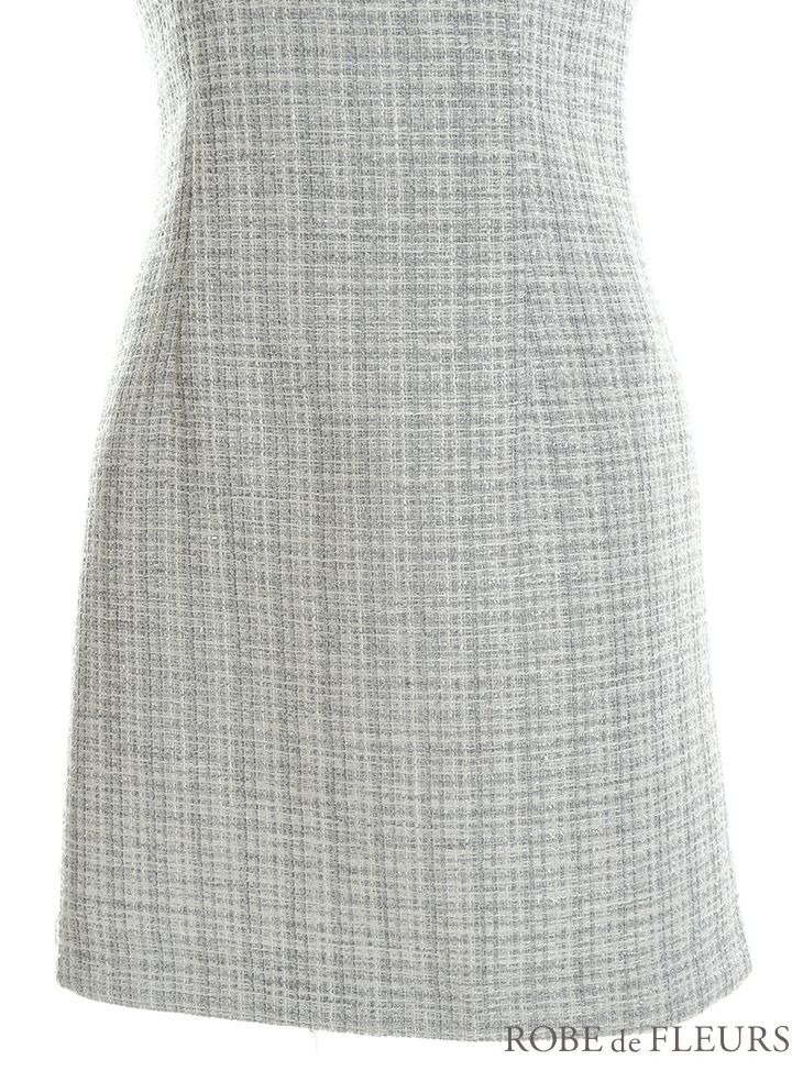 4. SALE [ROBEdeFLEURS/ローブドフルール] 高級 フリル襟付き ラメツイード ネックリボン ノースリーブ フレアミニドレス
