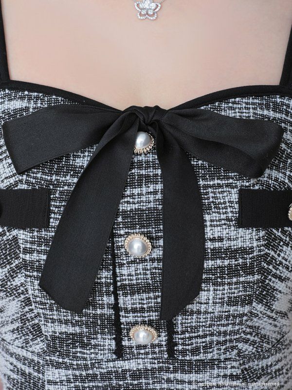 他の画像を見る 可愛くメリハリスタイルにメイク☆ [an/アン] 高級キャミソールネックリボンパールポケットデザインツイード裾フリルパイピングタイトミニドレス ¥ 22,000 税込 在庫切れ お気に入りに追加