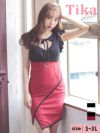3. フリル袖ウエストビジューモチーフネックリボンタイトミニドレス (Sサイズ~XLサイズ) (ゆんころ/キャバドレス着用)