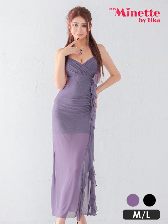 2/4新作★抜け感がおしゃれ見え♪ ロングドレス プチプラ Aライン キャミソール ストレッチ シースルー シンプル ラウンジ 大人 背中魅せ 黒 安い キャバドレス (波北かほ着用) [th-ld9299a]