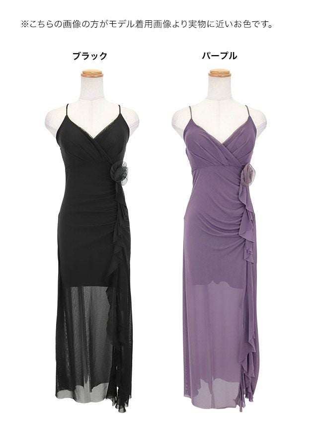ロングドレス プチプラ Aライン ホステス キャミソール シースルー シンプル 大人 上品 背中魅せ 安い キャバドレスのメイン画像