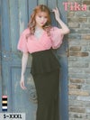 5. ロングドレス 袖あり 半袖 フレアスリーブ カシュクール 谷間 シフォン ペプラム バイカラー ストレッチ お腹カバー 下着のまま スリット 高身長 タイト 大きいサイズ XL XXL 4L ベージュ 黒 キャバドレス (黒嵜菜々子着用)[tk-ld1232-ha]