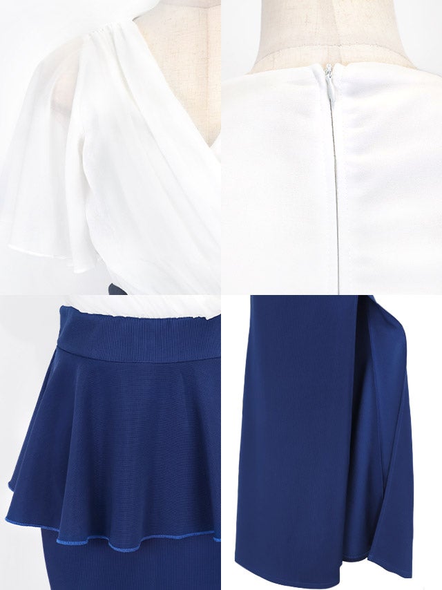 シアー半袖フレアスリーブカシュクール切り替えペプラムスリットバイカラータイトロングドレスのカラーバリエーション
