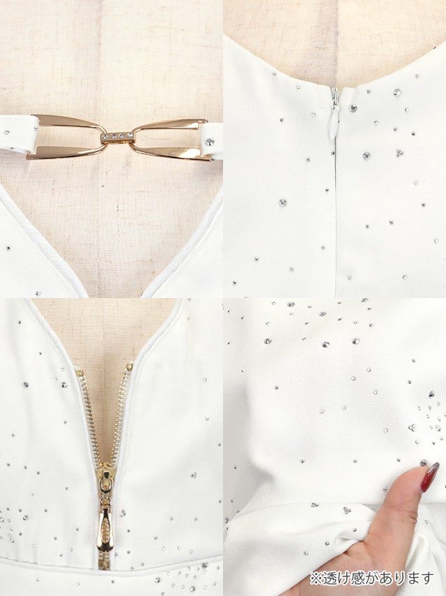ドレス全体に散りばめられたビジューが