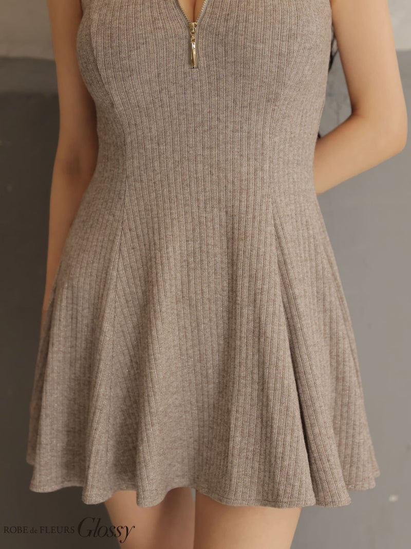 シンプルながらも女性らしさ溢れる♡ [ROBEdeFLEURSGlossy/ローブドフルールグロッシー] 高級 ブランド Aラインミニドレス 谷間 ノースリーブ ジップ ハイネック ラメニット (伊藤舞雪着用)